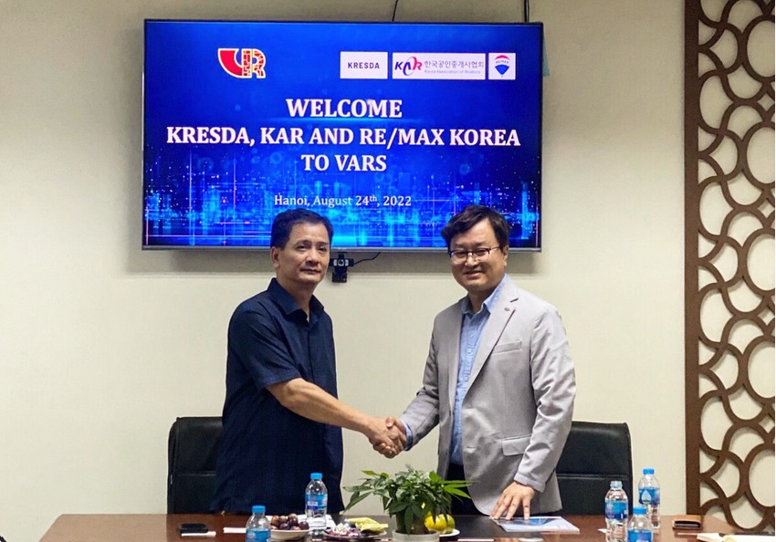 Chiều ngày 24/8, tại Văn phòng Hội Môi giới Bất động sản Việt Nam, Ông Nguyễn Văn Đính, Chủ tịch Hội Môi giới Bất động sản Việt Nam (VARS) đã tiếp Đoàn đại biểu của Hiệp hội Phát triển Dịch vụ Bất động sản Hàn Quốc (KRESDA), Hội Môi giới Bất động sản Hàn Quốc (KAR) và Công ty RE/MAX Hàn Quốc do Ông Lee JongHyeok, Chủ tịch KAR dẫn đầu.