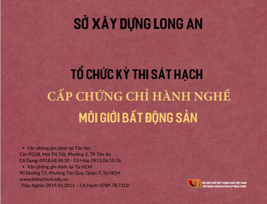 Thông báo: Tổ chức kỳ thi sát hạch cấp chứng chỉ Môi giới bất động sản tỉnh Long An năm 2022